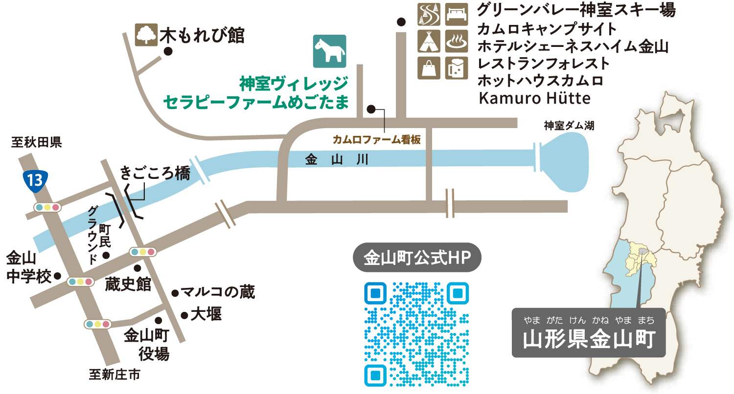 神室ヴィレッジ敷地内のファームカフェでは、金山産の渓流魚のランチや軽食・お飲物を、事前のご予約にてご提供します。主要食材は、地元の生産者より仕入れ、季節の一品は、シェフ自らが、春は山菜を取りに出かけ、夏は野菜育て、秋にはきのこを収穫して、冬には、伝統食をもって一年を経る。金山町を知り尽くした創意工夫のランチと軽食を、大自然でたくさん遊んだ後に、ご用意しております。